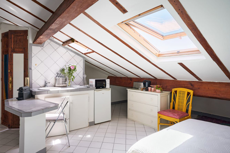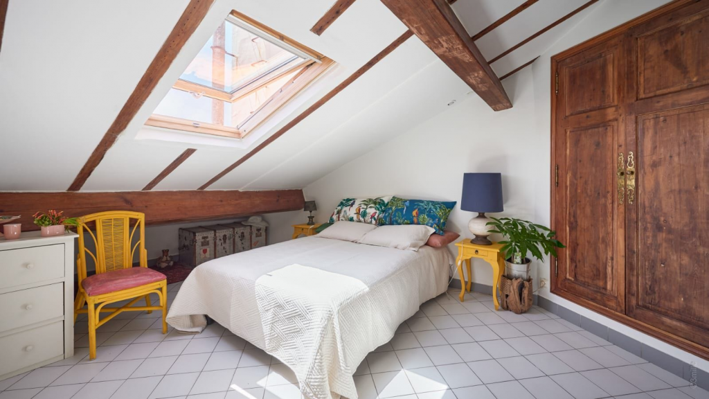 Un vrai lit avec matelas et sommier de qualité avec un velux garantissant une belle luminosité à la pièce…