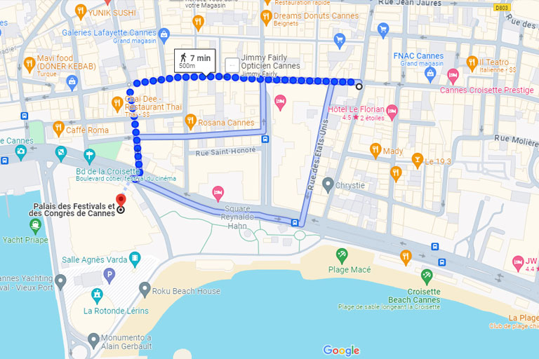 Situation idéal pour vos vacances ou évents à Cannes, en plein cœur du centre ville souvent appelé la banane.